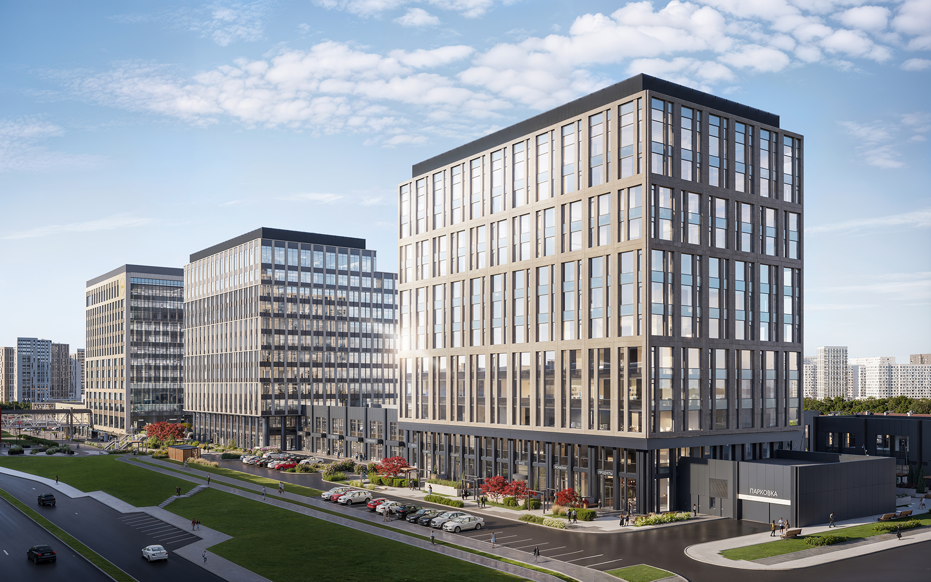 Бизнес-квартал «Прокшино» — это пять башен с общей площадью 206 000 кв. м, рассчитанных на более 20 тыс. сотрудников и благоустроенной территорией 7,5 га.